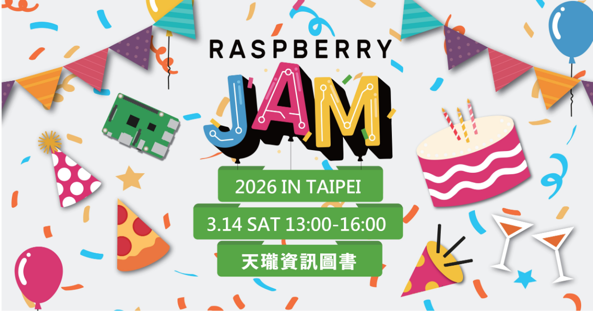 Raspberry Jam in Taipei 2026 是一個慶祝樹莓派生日的活動。樹莓派到了今年春天已經是第十四年了,所以樹莓派基金會籌劃了這樣的活動:”慶祝來自世界各地的樹莓派的生日”。